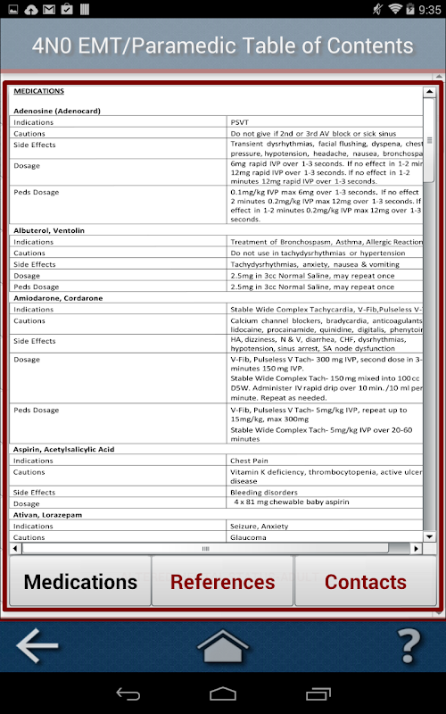 This app was created as a tool for 4N0 and EMT/EMR personnel. It was designed as a quick reference guide.