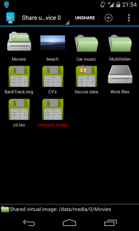Seçilen dosyaları paylaşın. Un / Usb Depolama (UMS) modu ile sanal diskler şifreli