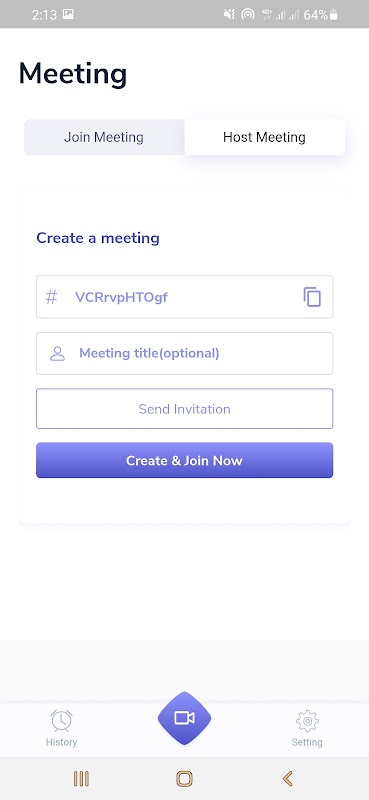 —Create Meeting and share code to join others.