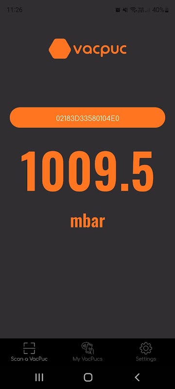 VacPuc, standart bir cep telefonundan endüktif güç aktarımı ile çalışır ve veriler, kullanımı kolay bir mobil uygulamada görüntülenir ve oturum açar.