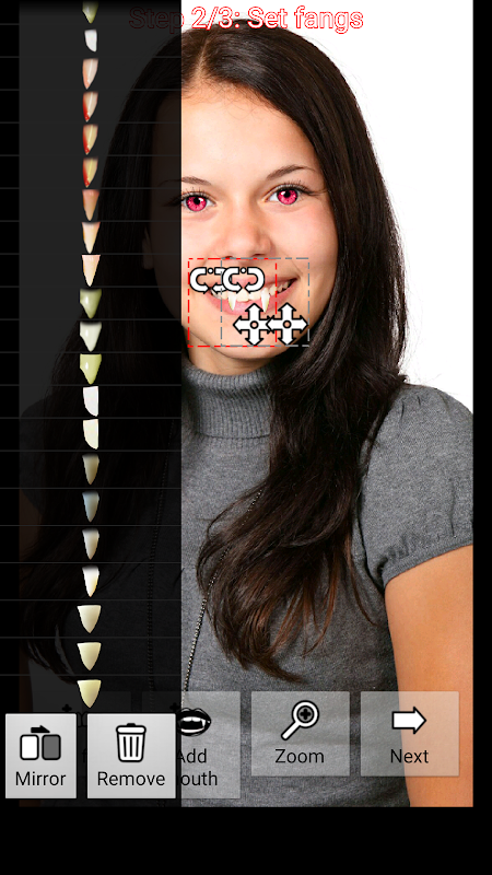 Snap a fresh portrait, or use one from your gallery, and in 3 easy steps you'll have a nice, sparkly vampire. There are numerous eyes and fang styles to choose from, too!
