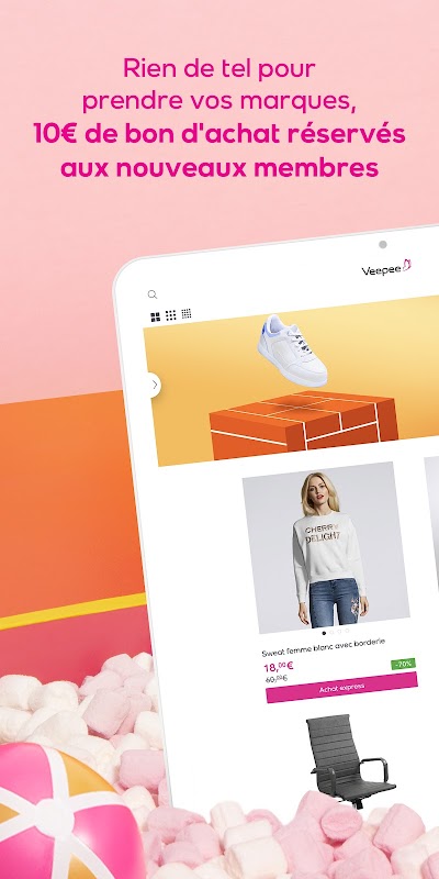 Outlet fiyatlarındaki ürünlerden en son trendlere kadar en iyi alışveriş deneyimi için Veepee özel satış uygulamasını indirin.