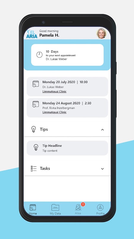 Uygulama ile doktorunuzdan randevu onayları ve hatırlatıcıların yanı sıra sağlık durumunuz, yaşam kaliteniz veya hastalığa özgü semptomlarla ilgili sorular alırsınız. Velaria, bundan otomatik olarak bir özet rapor oluşturur ve bir sonraki konsültasyonunuz için en iyi şekilde hazırlanmış olan ve endişelerinize daha hızlı ve daha spesifik yanıt verebilecek olan doktorunuza doğrudan gönderir.