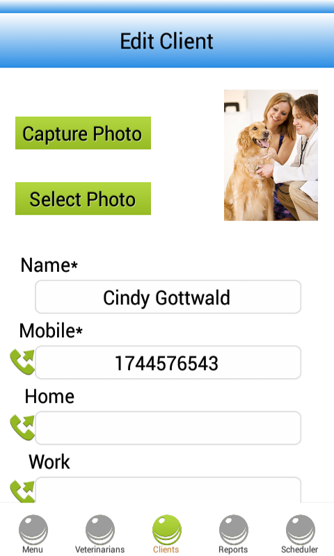 ★ Müşteriler bölümü, benzer şekilde her müşterinin tam profilini ve tarihçesini (bu durumda hayvanlar) sahiplerinin adresleri, telefon numaraları, e-postaları ve diğer iletişim bilgileri ile birlikte tutar. Yazılımdan herhangi bir müşteriye doğrudan arama yapma seçeneği de mevcuttur.