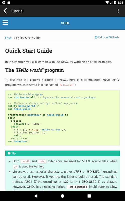 VHDL kodunu doğrudan Android cihazınıza yazın! Bu uygulama kod parçacıklarını öğrenmek ve test etmek için idealdir!