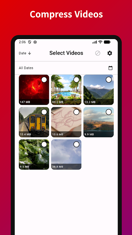Video Compressor Pro, orijinal kayıt tarihinizi, saatinizi ve konum bilgilerinizi korurken dosya boyutunu küçülten ve cihazınızın depolama alanını boşaltan güçlü bir video sıkıştırma uygulamasıdır.