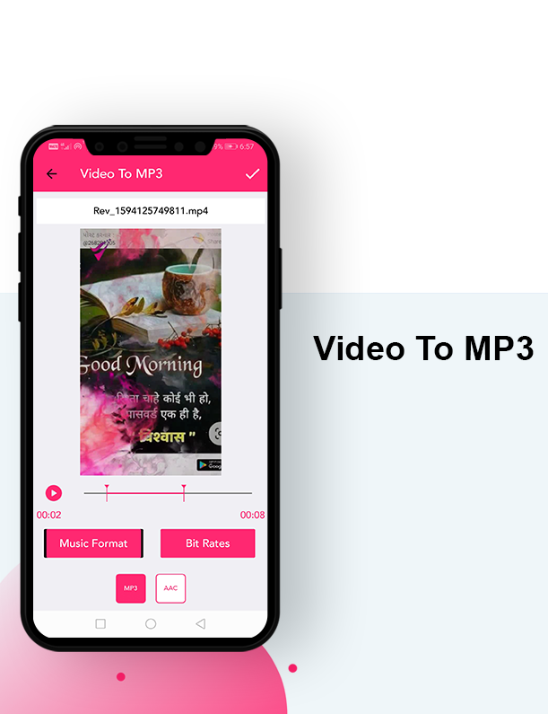 Video to MP3 Converter Tools Converts Any video to Audio as MP3 Audio and Save to Your Device.