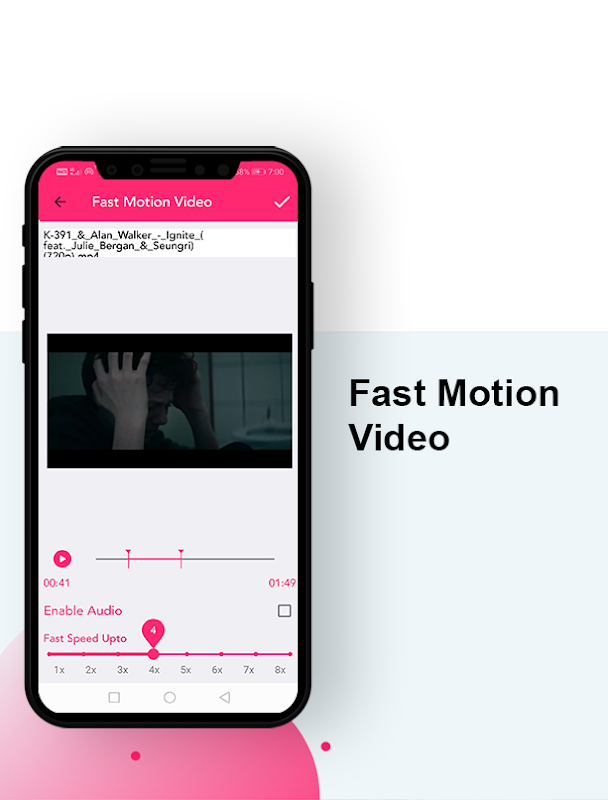 Fast Motion Video Tools Select Any One Video and Give Speed Like 2x,3x, and 4x up to 10x.