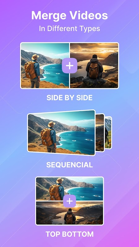 Bu video birleştirme uygulaması, farklı format, bit hızı ve kare hızına sahip videoları tek bir videoda birleştirmeyi destekler. Ayrıca farklı videoları tek bir ölçekte ölçeklendirir ve birleştirir. Ayrıca farklı çözünürlükteki videoları tek bir videoda birleştirir veya birleştirir.