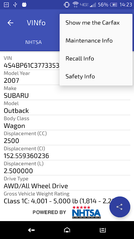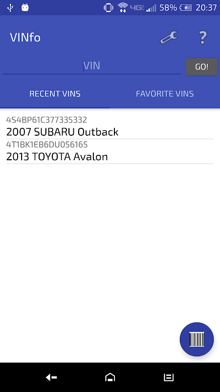 (Freewood tarafından) VINfo ücretsiz tam özellik VIN dekoder ve tarayıcıdır. Oku ve araçların birçok marka ve model için araç tanımlama numaraları, kod çözme VIN bilgilerini kaydetmek, favori ya da son zamanlarda taranmış Vins kaydedin. Bu uygulama Ulusal Otoyol Ulaştırma Güvenliği Ajansı (NHTSA) sonuçlar görüntülenir. Kullanıcı bir VIN CARFAXtan sonuçlarını kontrol etmenizi sağlar.