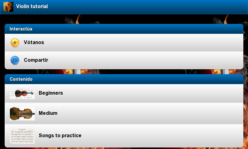 Get started in the fascinating world of violin with our Violin tutorial app. In a simple and progressive way, through 20 lessons structured in two blocks you can acquire the knowledge necessary to get beautiful melodies and songs for your violin. The app also contains a wide range of more complex songs with its tutorial, so you can learn them quickly and easily.