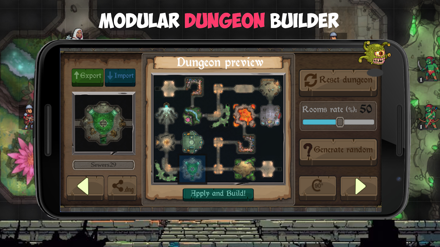 45'e kadar sanatsal modüler zindan parçası kullanarak özel modüler zindanlar inşa edin ve her karşılaşmayı görsel bir şahesere dönüştürün. Zindanlar tasarlayın ve benzersiz bir yaratıcılıkla kampanyanızı hayata geçirin. Her yeni zindan neslinin muazzam bir RPG sürprizi olduğu rastgele zindan oluşturma aracıyla masaüstü RPG maceralarınızı bir üst seviyeye taşıyın!
