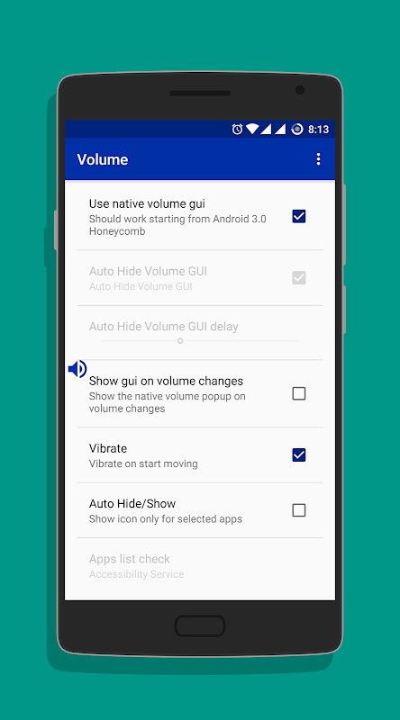 Bu uygulama, ekrana kayan bir ses düğmesi ekler. Ses seviyesini değiştirmek için kullanın.