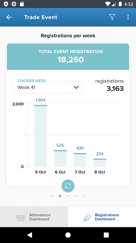 · Real-time attendance and registration numbers; filtered according to visitor type.