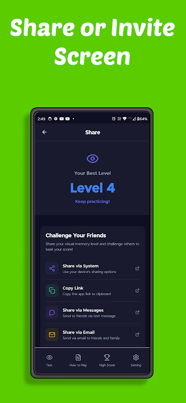 Gerçek bilişsel bilimden ilham alan bu bağımlılık yaratan görsel hafıza testiyle beyninizi eğitin. İster öğrenci, ister beyin jimnastiği meraklısı, ister sadece kendi zihinsel becerileriniz hakkında meraklı olun, bu oyun çalışma hafızanızın sınırlarını keşfetmenin eğlenceli bir yoludur.