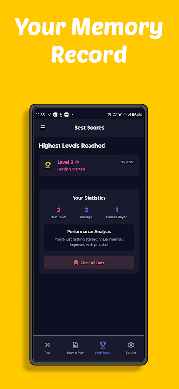 ✅ En yüksek seviyenizi ve ortalama performansınızı takip eder