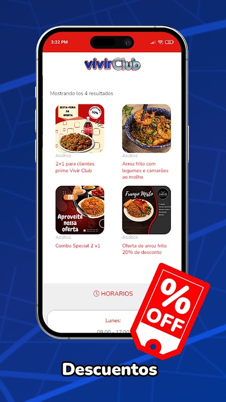 APP restoranlar, etkinlikler ve hizmetlerdeki teklifleri yayınlamak için tasarlanmıştır.