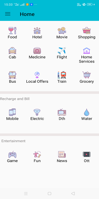Vk5 App is an all in one aggregator platform which aggregates different kind of daily apps in one place in various categories like Cabs, Food, Recharge, Bill Payment, Movies and Entertainment etc.