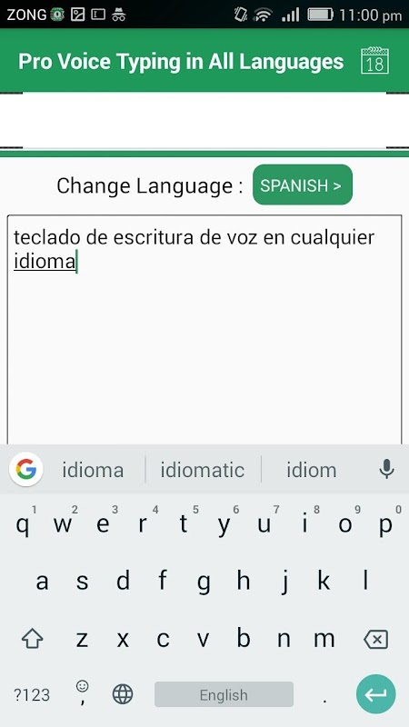 We all know English is an international language and people from all over the world want to use it in their texting and notes. The app voice typing keyboard in all languages is valuable for this purpose too. You can type long English text by voice using default selected English language of the app. English speech to text converter feature is also available to help you converting English Audio into text.