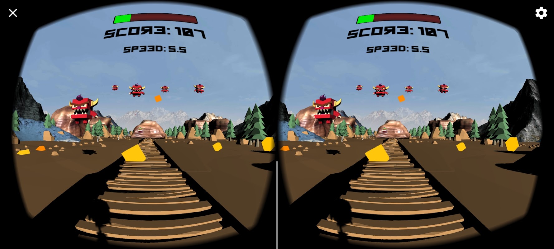 Is a pure VR game using Google Cardboard or Google Daydream combining the concept of Endless Runner Game and VR together. The main objective of the game is very simple. Run and destroy incoming enemies or blocked obstac;e without being hit. There are four different objects in this game