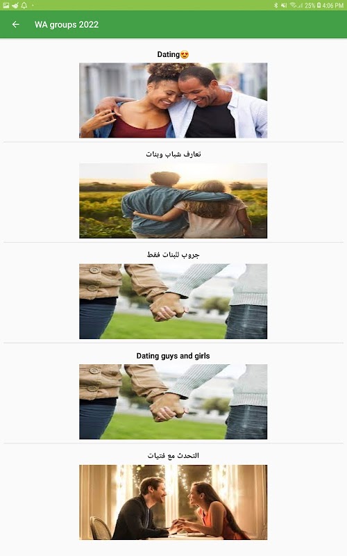 WhatsApp Grupları 2022 uygulaması aracılığıyla, çeşitli alanlarda WhatsApp gruplarına katılabilirsiniz, bu uygulamadaki kişilerin gruplar uygulamasına gruplarını ekledikleri ve ardından hangi gruba katılmak istediğinizi seçip, gruba katıldığınız anlarda girebilirsiniz.