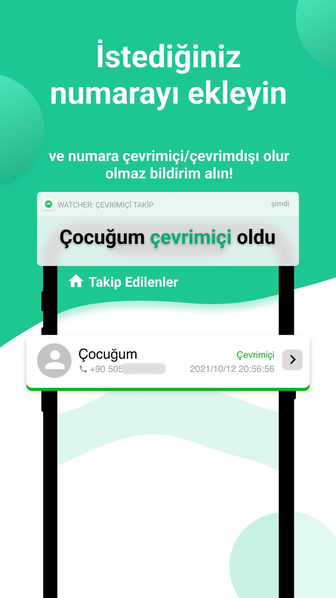 WhatsApp kullanırken sevdiklerinizin veya çocuğunuzun hareketlerini takip etmek ister misiniz? İşte size harika bir takip ve bildirim uygulaması; Watcher: Online Tracker - WhatsApp için çevrimiçi son görülme takipçisi. Bu uygulama ile istediğiniz rakamı ekleyebilir ve aktivite bildirimleri ile hemen takip etmeye başlayabilirsiniz.