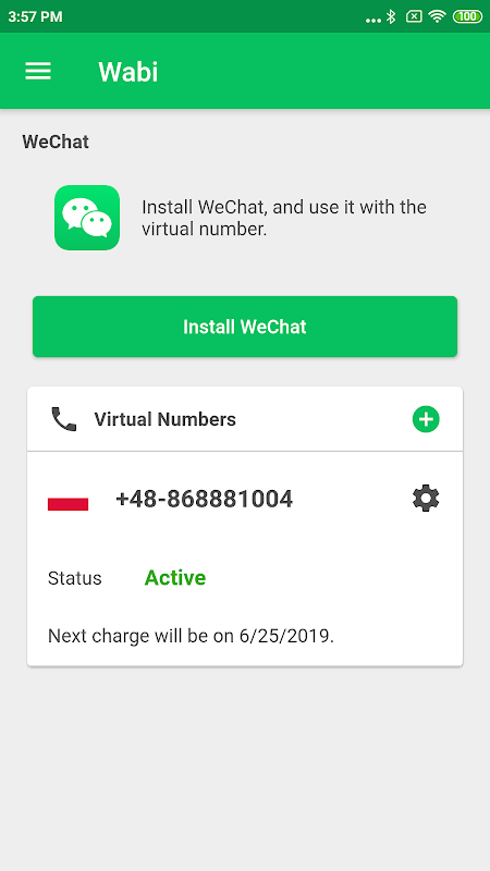• Wabi, WeChat ile çalışması garantili temiz, özel, geri dönüşümlü olmayan telefon numaraları sağlar!