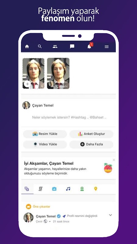 • Güncellemeler, fotoğraflar ve videolar paylaşın