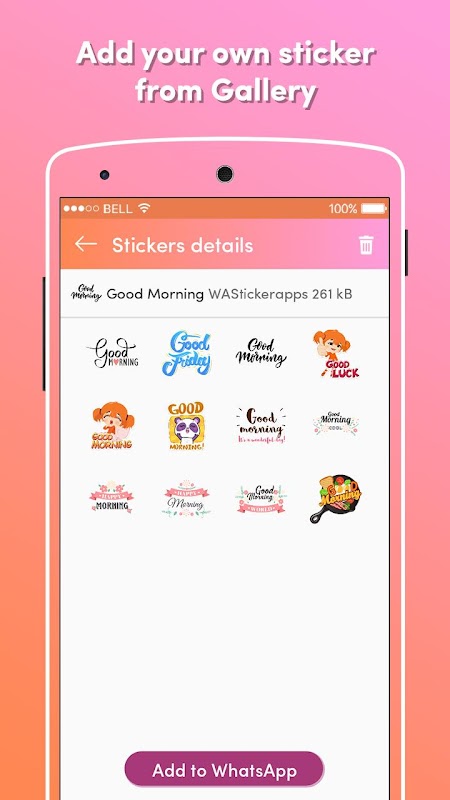Installing this sticker for WhatsApp messenger you can enjoy variety of free cartoons stickers, angry stickers, love stickers, good morning stickers, birthday stickers, gesture stickers, greetings stickers, romantic stickers etc.