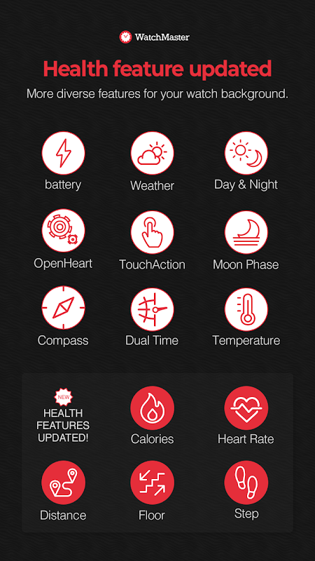 Some of our watchfaces(watch backgrounds) have weather and health features.