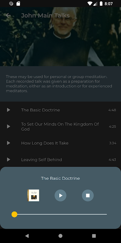 - birçok John Main OSB görüşmesinin yapıldığı bir ses bölümü
