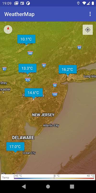WeatherMap, bu harita üzerinde hava durumunu görüntüleyen basit bir uygulamadır. Bu harita, birkaç ana şehrin sıcaklıklarını gösterir ve haritalara bir katman uygulamanıza izin verir.