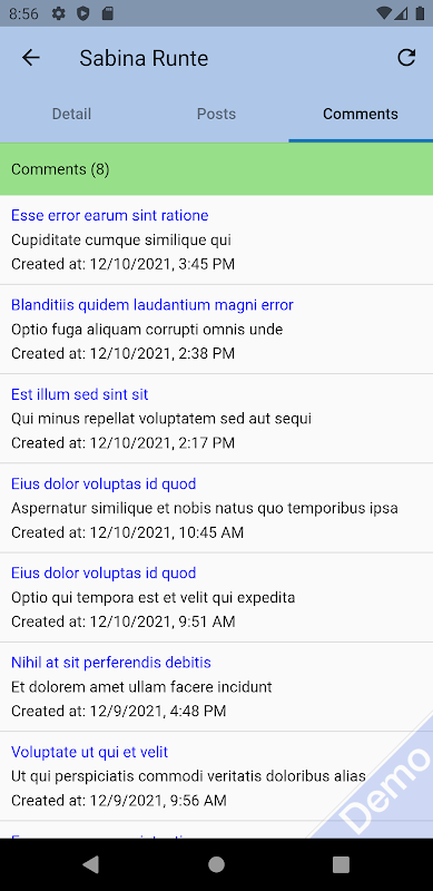 Demo App: Bir mobil uygulama kullanıcıların gönderilen mesajların şeklinde konuşmaları tutan sağlar.