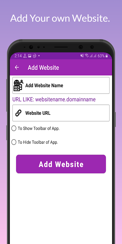 Here You can add your Website and enjoy in App Version .