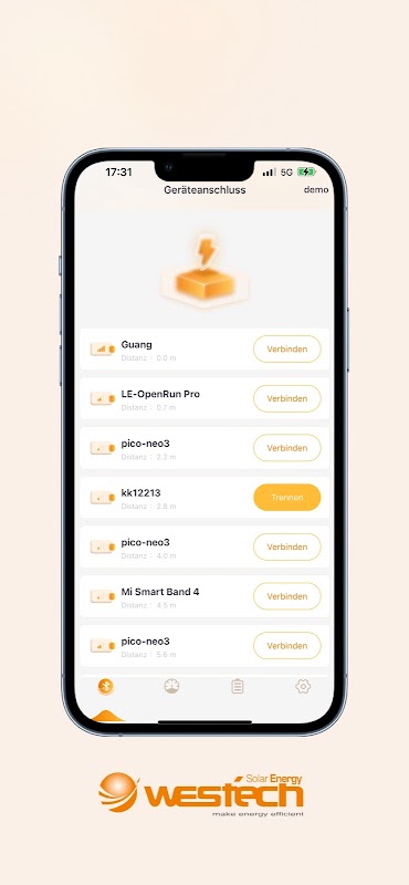 Westtech-Solar Energy'nin akıllı pil yönetim sistemi, pil durumunu izlemek, gerçek zamanlı bilgileri toplamak ve depolamak için Bluetooth aracılığıyla aktif ekolayzıra bağlanır.