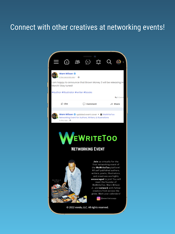 WeWriteToo will be a social media platform for self-published authors, aspiring writers, and book illustrators where they can network, promote, and share resources amongst each other.