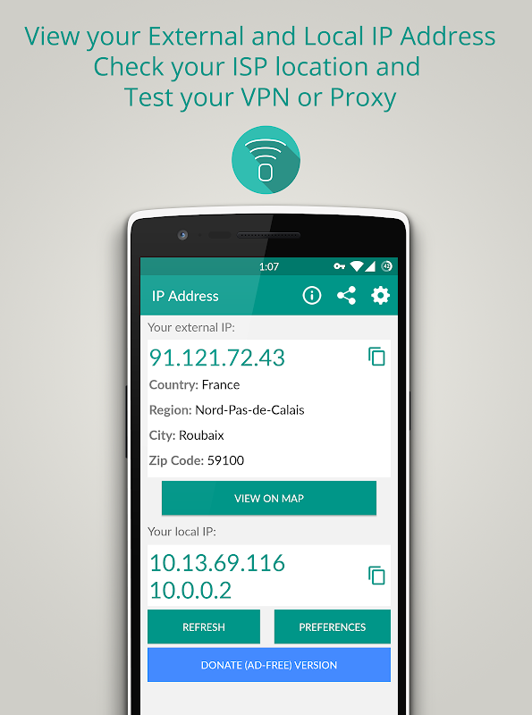 Find out your external and internal Internet Protocol Address with ease, simply by opening the app. This app also displays the IP lookup for your Internet Protocol address. Check the location on maps with this app. You can also add your own remote server URL to check the IP address or switch between the options. Test your VPN or proxy server on android by using this app.