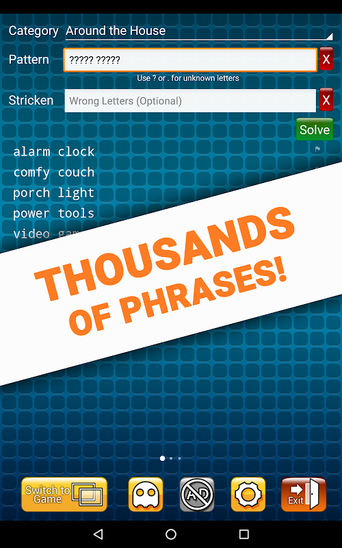 Wheel & Phrase Cheat has over 10,000 Wheel of Fortune phrases. Even if we don’t know the specific phrase you’re trying to solve we’ll provide you with word hints to ensure you get that gold box every time. Use the cheat as you watch the game on television, or open our intuitive overlay to cheat and play the app at the same time!