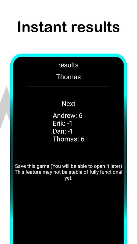 • In the Offline mode, one player, the one that uses the app, has the score table and enters the predictions and the actual number of pairs that were made.