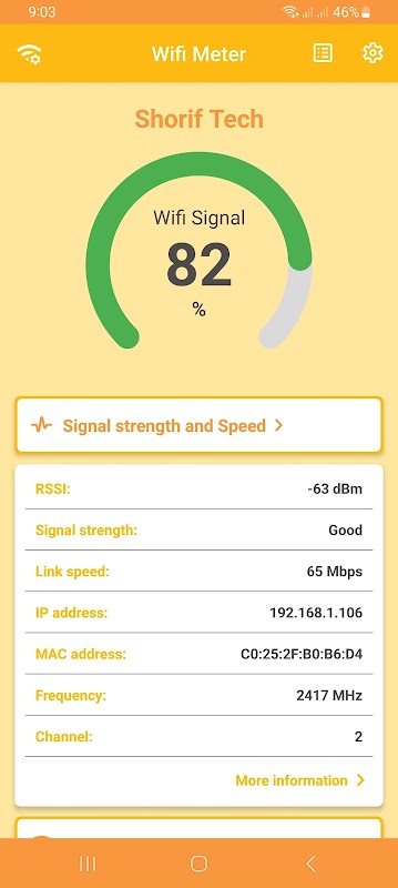 Mevcut WiFi sinyal gücünüzü gerçek zamanlı olarak görüntüleyin.