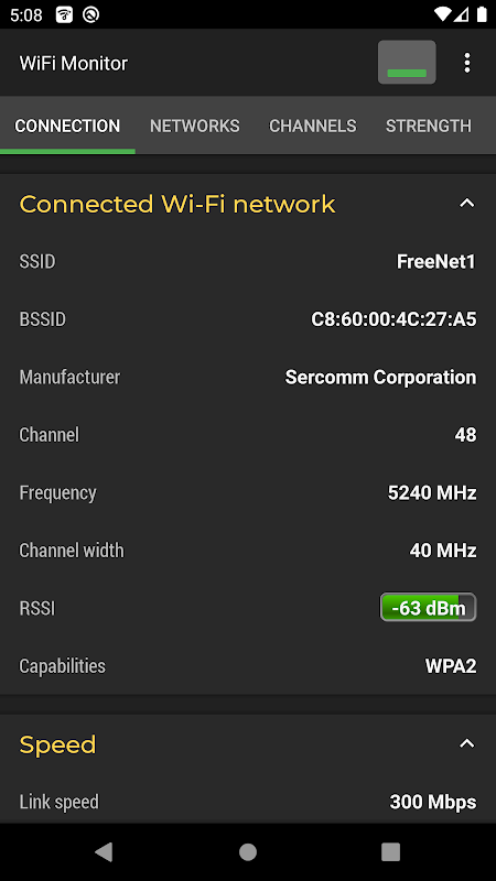 WiFi Monitor Pro , WiFi ağlarının durumunu analiz etmenize ve parametrelerini (sinyal gücü, frekans, bağlantı hızı, vb). Bir kablosuz yönlendirici kurmak ve Wi-Fi kullanımını izlemek için kullanışlıdır. WLAN'a bağlı cihazları bulmaya yardımcı olan bir tarayıcı olarak da kullanılabilir.
