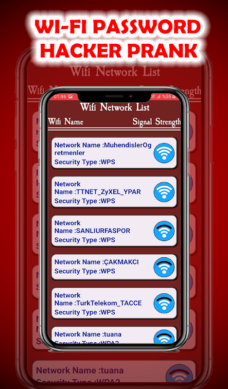 Lütfen unutmayın: Bu bir şaka uygulamasıdır. Uygulama sadece wifi ağını kırıyormuş gibi yapıyor. Tamamen eğlence ve simülasyon amaçlıdır.
