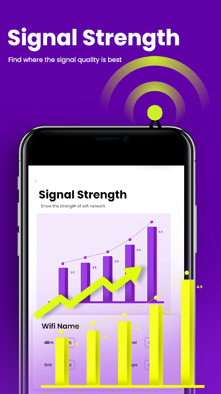 WIFI şifre kurtarma uygulamasını kullanarak yakındaki ağların sinyal gücü hakkında önemli ayrıntılara ulaşabilirsiniz. Sürekli ve güvenli bir internet bağlantısı oluşturmak için sinyalin yoğunluğuna bağlı olarak bağlanmak için doğru ağı seçin.