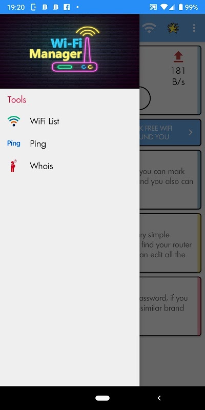 WiFi-Manager - Whois, benim WIFI kullanır (benim WiFi, WiFi Sinyal Gücü Meter, WiFi Extender, WiFi Güvenlik, Yönlendirici Kurulumu, Yönlendirici Araçlar, WiFi Araçlar, IP Araçlar, vb kullanın) serbest Ağ araçları.