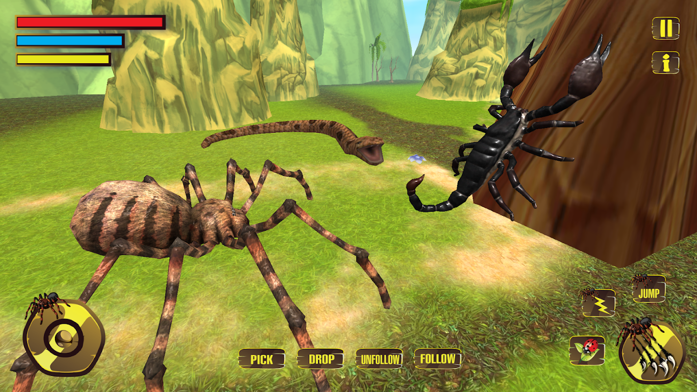 Örümceğinizin sağlığına, enerjisine, su ve yiyecek göstergelerine dikkat edin. Çünkü hayatta kalmak önemlidir, aksi takdirde öldürülürsünüz. Tarantula örümceğinizi özelleştirmek için puan kazanın. Örümcek simülatörü Rodent Jungle için bölgenizi savunun, bu örümcek evcil hayvanının hayatıyla ilgili değil, mikro böcek dünyasının böcek örümceği 3d hikayesidir. Ayrıca kendinizi Karınca kolonileri, Gergedan Böcekleri, Uğur Böcekleri, Dua Eden Mantis, Eşek Arısı ve Bal Arıları ve Akrep'e karşı kafa kafaya savaşlarda bulacaksınız. Bölgenizi savunun, düşman kraliçenin klanına karşı savaşın ve onları bölgenizden uzaklaştırın. Bu örümcek evcil hayvanının hayatıyla ilgili değil, mikro böcek dünyasının böcek örümceği 3d hikayesidir.