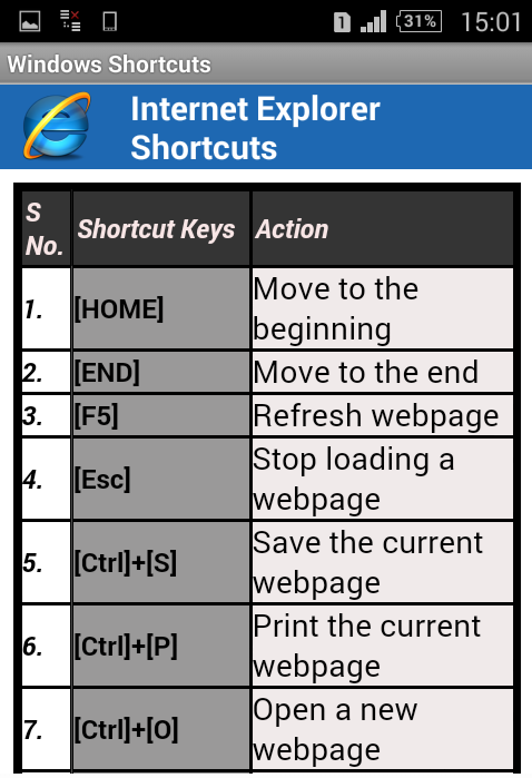 Bu uygulama tüm pencereleri kısayolları listesi, kategori bilge içerir.