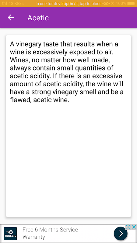 You'll learn that and more, because the app explains, in plain English, all the fancy words used to describe wine. This dictionary contains the words used to describe the taste of wine, which grapes are used in which wines or wine regions, and much more! It will help you increase your knowledge and appreciation of wine.