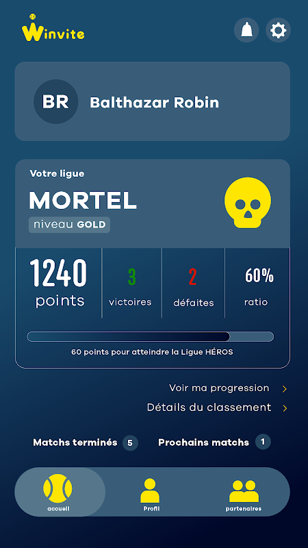 WINVITE, 1 saatlik bir rezervasyona mükemmel şekilde uyan kısa formatlı maçlara dayanan tescilli unisex tenis sıralama sistemi sayesinde, nerede olursanız olun herkesle anlamlı maçlar oynamanıza olanak tanır. Sadece bir arkadaşınızı davet edin, birlikte bir kort ayırtın, maçı oynayın ve sonucu birlikte kaydedin.
