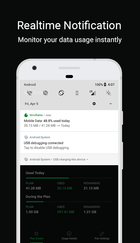 Wireflame mobil veri kullanımızı kontrol altına almak ve uygulama bazında veri kullanımınızı görüntülemek için muhteşem bir uygulamadır. Anlık olarak mobil verinizi kullanan, internetinizi yavaşlatan veya boşa harcayan uygulamalarınızı görüntüleyebilirsiniz. Ek olarak, aylık veri kullanım kotanızı ayarlayarak günlük veri kullanımınızı da kısıtlayabilirsiniz.