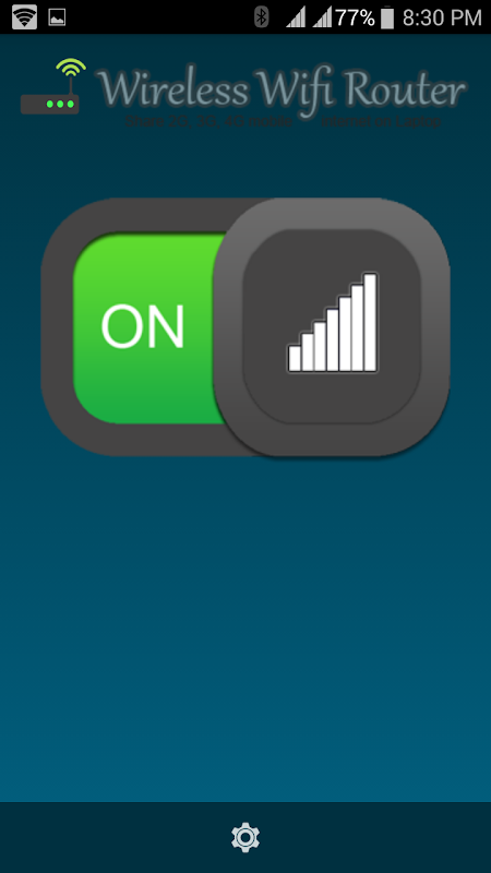 Bu wifi yönlendirici uygulaması diğer cep telefonlarına ve dizüstü bilgisayarlarda tek 3G, 4G mobil internet kullanımı için izin verir. Sadece o zaman diğer dizüstü bilgisayarlar ve cep telefonlarına 2g 3g 4g internet kullanımı ON düğmesine basın.